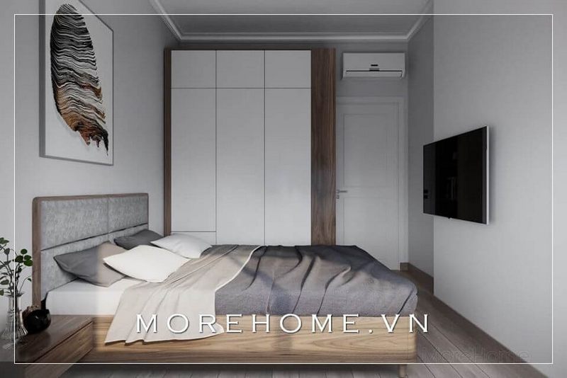 Thiết kế sáng tạo khi thiết kế 2 tủ quần áo âm tường 2 bên, tận dụng diện tích căn hộ vừa thể hiện tính sáng tạo vừa có tính thẩm mỹ.