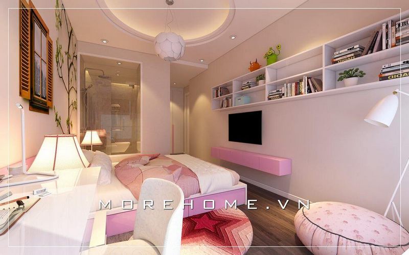 Trang trí góc học tập ấn tượng với kệ sách trong phòng ngủ