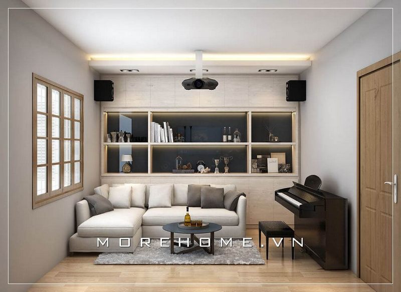 Thiết kế phòng khách trẻ trung trong không gian nhà phố, biệt thự