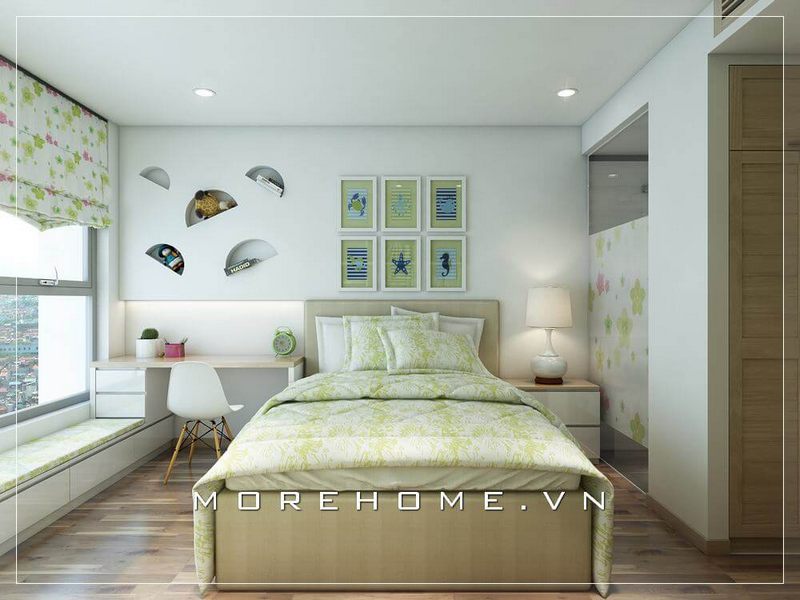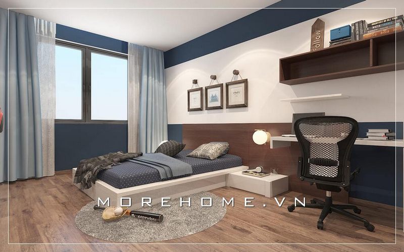 Nội thất phòng ngủ bé trai hiện đại và ấn tượng, cửa sổ được thiết kế rộng giúp tận dụng ánh sáng từ bên ngoài, tạo cảm giác cho căn phòng luôn tươi mới và thoải mái nhất