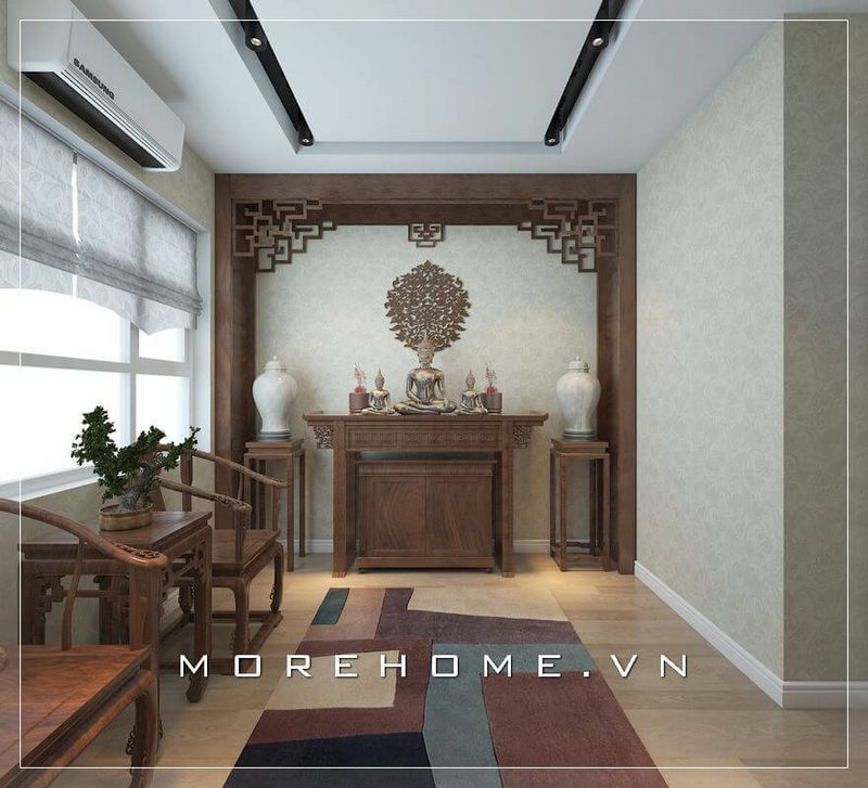 Mẫu bàn thờ gỗ hiện đại phù hợp với nhiều không gian phòng khách chung cư, biệt thự, nhà phố