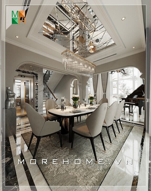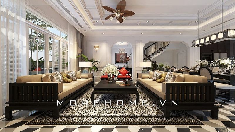 Thiết kế không gian phòng khách biệt thự sang trọng với nội thất tân cổ điển thể hiện cá tính và đẳng cấp của gia chủ