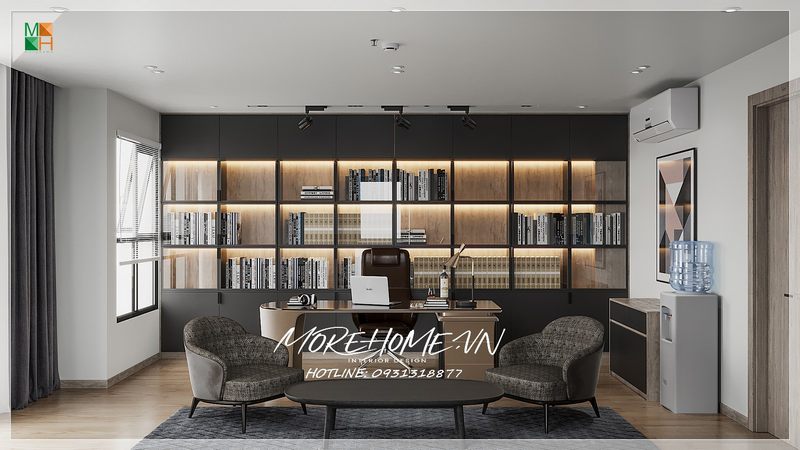 Phòng giám đốc được thiết kế với phong cách hiện đại, đầy đủ các tiện nghi và hợp phong thủy, tạo nên một không gian đặc biệt cho người lãnh đạo của một công ty, doanh nghiệp.