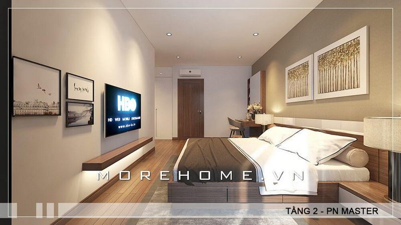 Gia chủ đã lựa chọn chiếc giường ngủ đa năng của nội thất phòng ngủ chung cư gỗ công nghiệp để tiết kiệm tối đa diện tích cho căn phòng ngủ nhỏ.