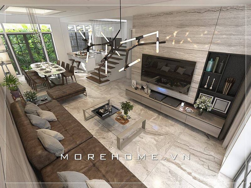 Nội thất phòng khách biệt thự cao cấp theo phong cách hiện đại được thiết kế.